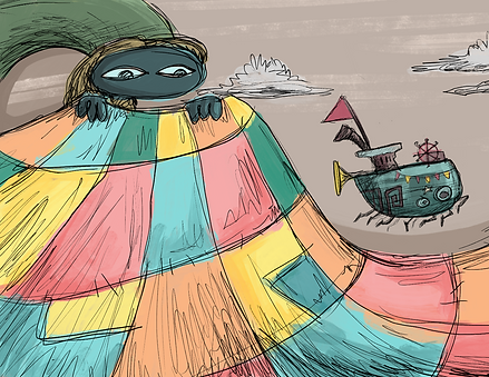 I was entrusted with designing the main character- a walking ship, as well as experimenting with styles and layouts for the film. Through my designs, I aimed to capture the freedom, vibrance and energy of the inner child of a creative mind and hence, for inspiration, collected drawings from children (aged 5-7) at a workshop I held in a neighbourhood preschool. To watch this short, click here.